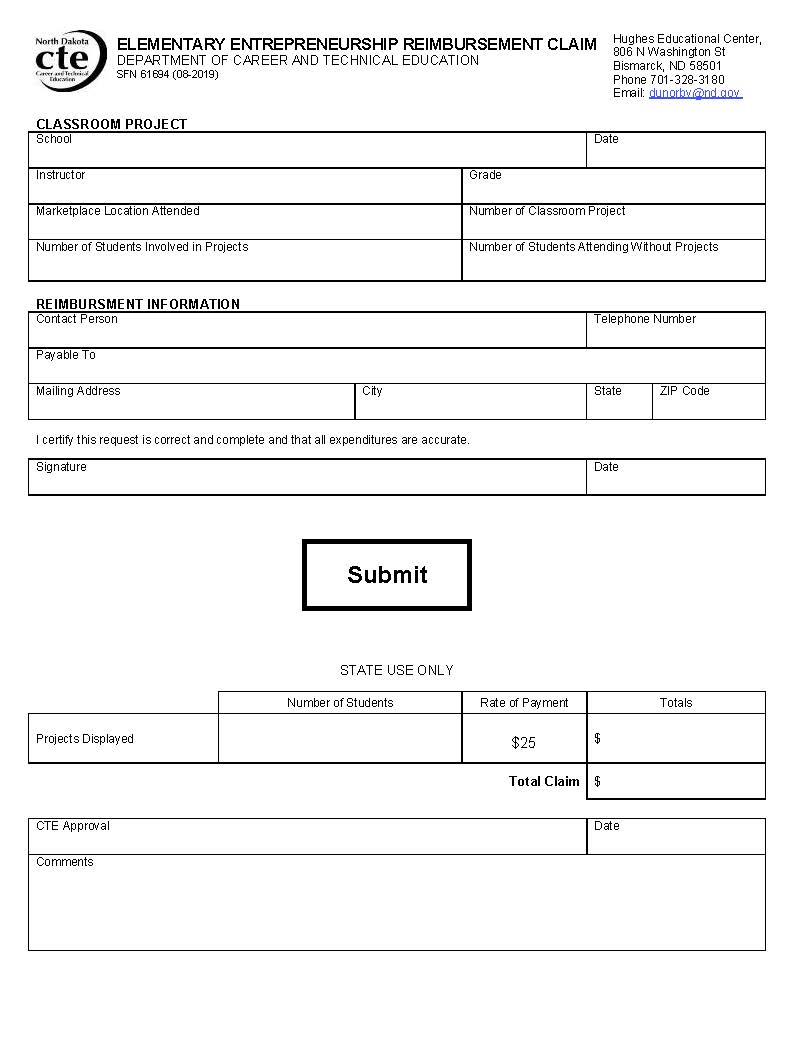 Please download, complete, save and push submit button to send to Dustin Norby for reimbursement. (For TEACHERS claiming reimbursement, not SCHOOL)