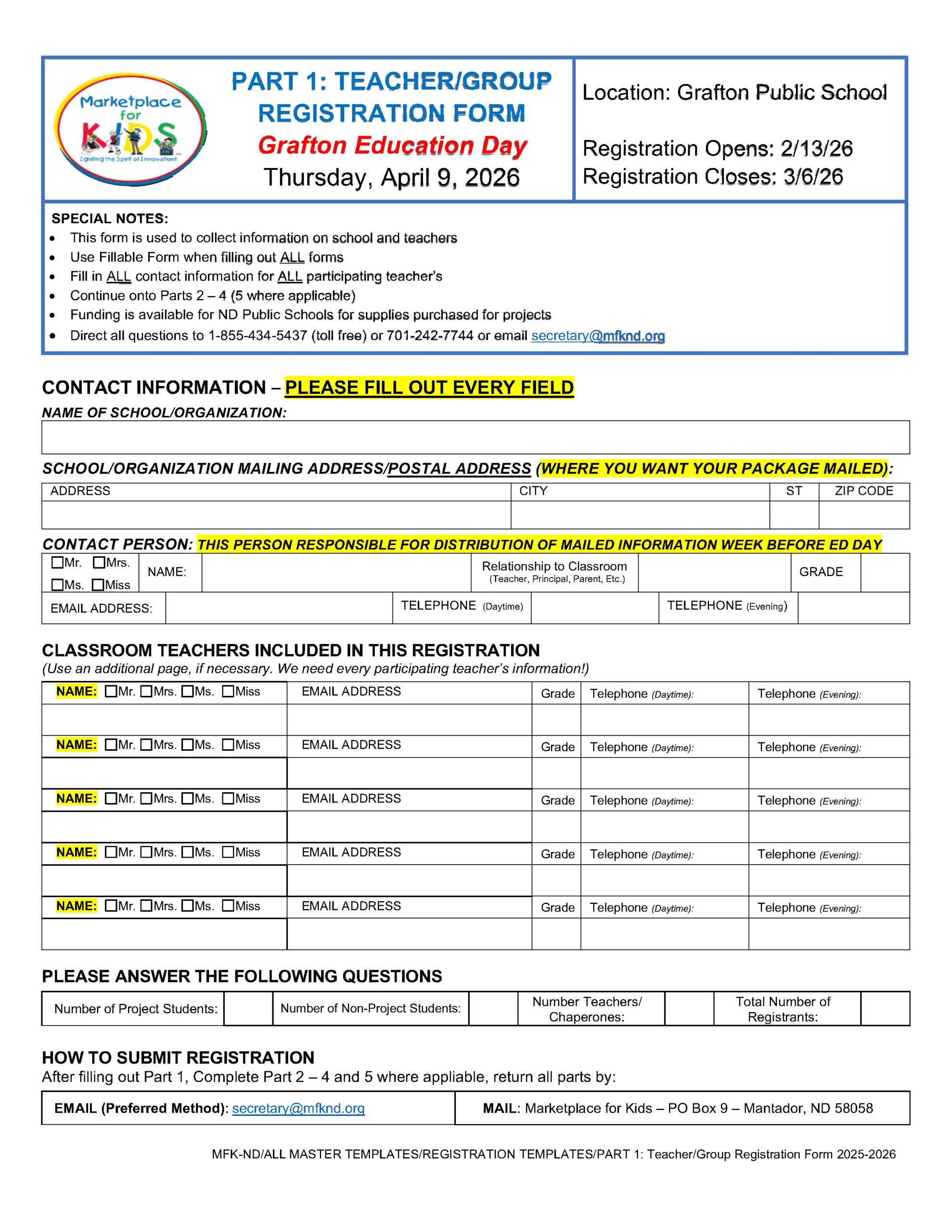 Project Reimbursement Form & Form W-9 – TEACHER